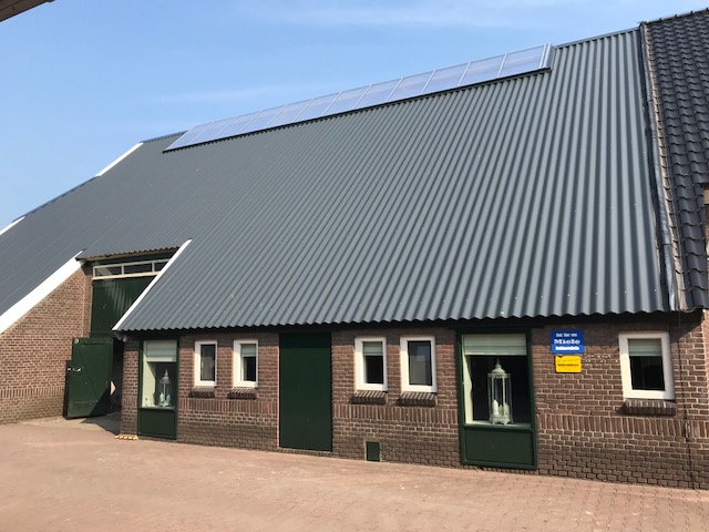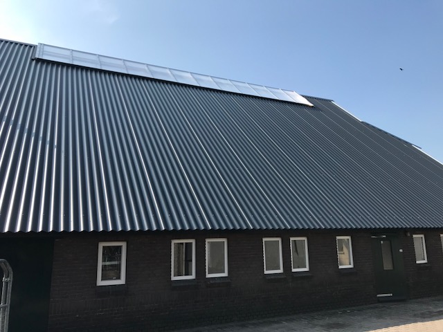 Renovatie achterhuis Drentse boerderij Renovatie achterhuis Drentse boerderij Voor een opdrachtgever in Ansen hebben wij het achterhuis van een oude Drentse boerderij gerenoveerd. Het betrof een voormalige rietgedekte kap, die nadat het riet slecht was geworden bedekt is met asbestgolfplaten. Eerst hebben wij het asbest van het achterhuis gesaneerd en het riet visueel schoongemaakt. Na de visuele vrijgave hebben we al het oude riet verwijderd. Daarna is de oude sporenkap volledig nagekeken en vlak gemaakt en waar nodig door ons verstevigd. De nok hebben we veranderd, zodat de lichtnok er later op gemaakt kon worden. Vervolgens hebben wij geïsoleerde Falk sandwich panelen 40 mm dik golfplaat model gemonteerd en is de lichtnok geplaatst. Om een juiste inschatting van de werkzaamheden en uren te maken vergt dit soort daken veel voorbereiding en inzicht van onze medewerkers. En voor de uitvoering is veel kennis en ervaring van de saneerders en dakdekkers nodig. Een uitdaging voor ons allemaal, met een fantastisch mooi eindresultaat!