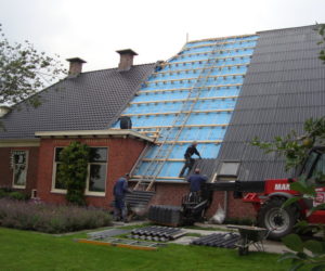 Renovatie boerderij Usquert Dakrenovatie boerderij Usquert Man&Mach heeft het dak van deze boerderij compleet gerenoveerd. De asbesthoudende golfplaten zijn verwijderd en het onderliggende riet is verwijderd. Aangetast hout is vervangen en het gehele dak is uitgevlakt. Als laatste zijn nieuwe golfplaten gemonteerd.