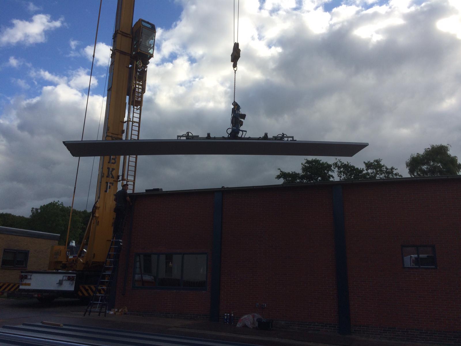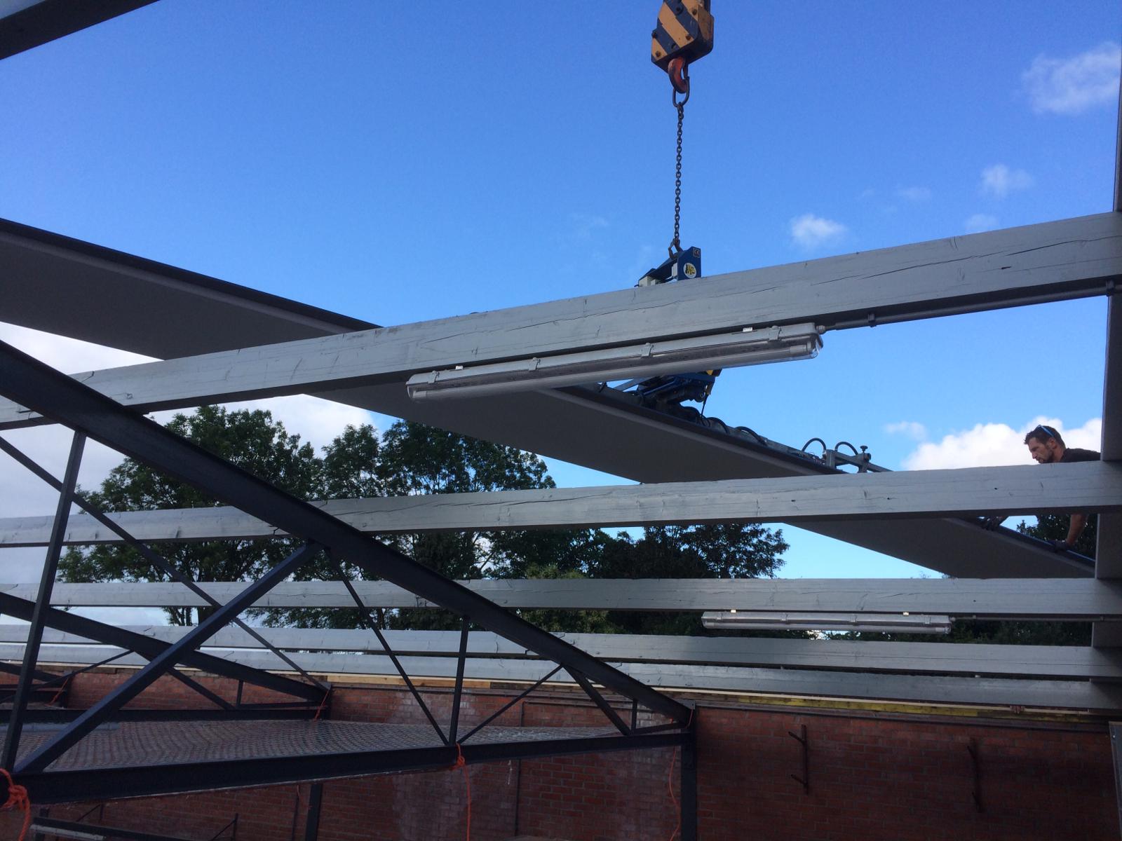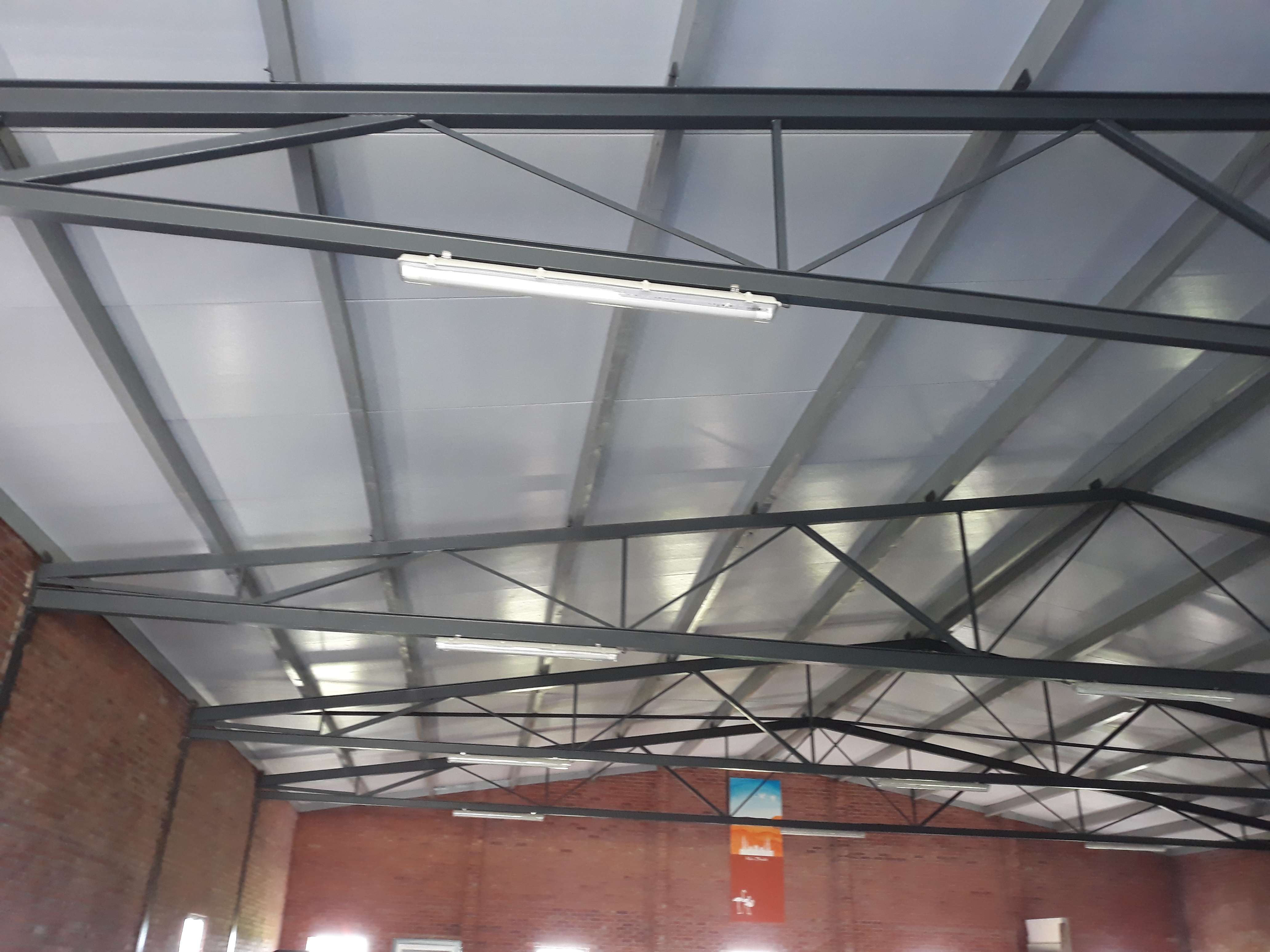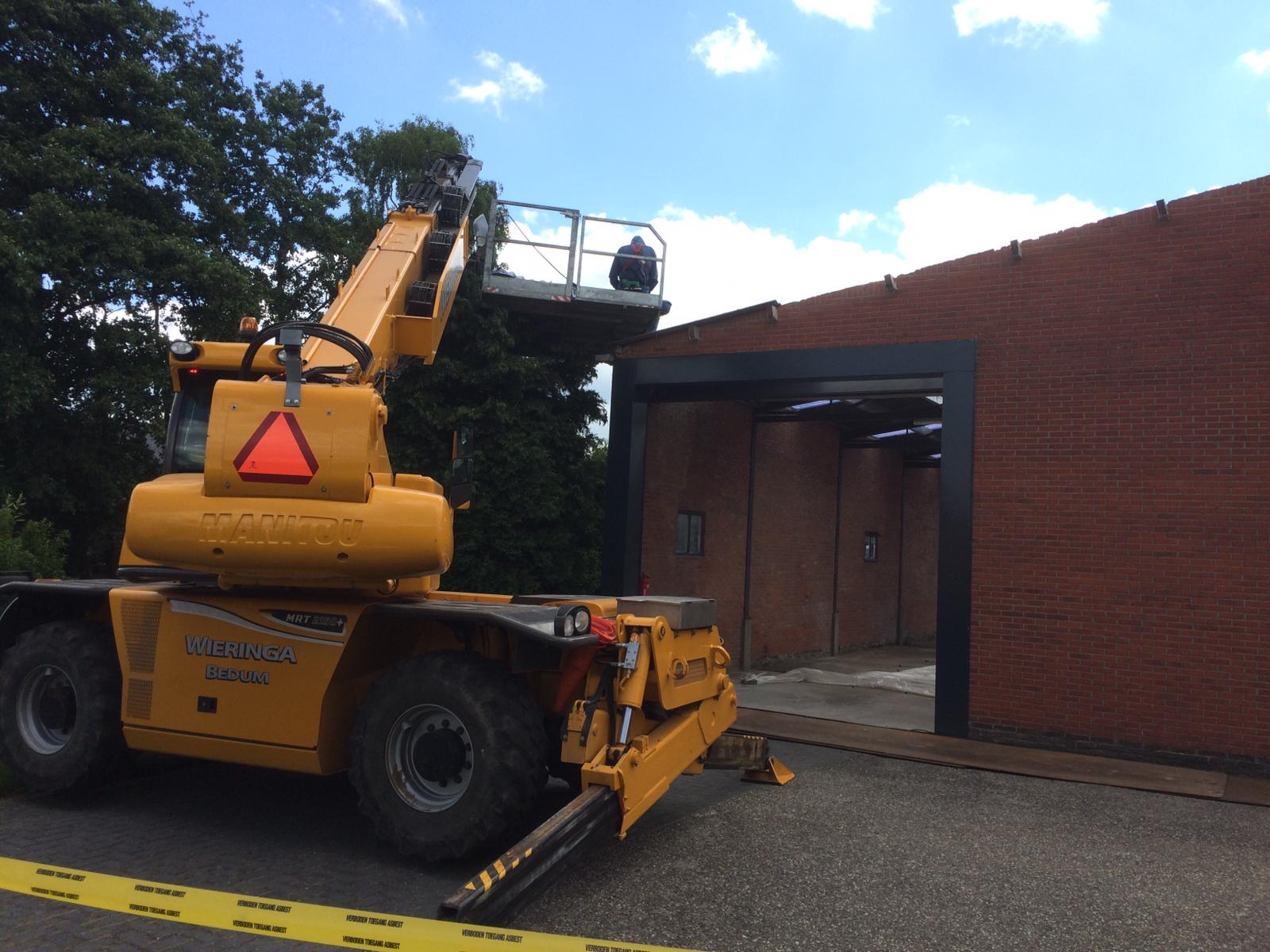 Renovatie loods in Oostwold Voor een lokaal schildersbedrijf hebben wij van de bedrijfsloods het asbesthoudende dak gesaneerd. De opdrachtgever heeft na het saneren zelf de spanten en gordingen geverfd, voordat wij de nieuwe geïsoleerde sandwichpanelen met een trapezium driekroons dak hebben gemonteerd. De opdrachtgever was zeer blij met de strakke planning van begin tot eind.