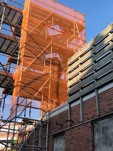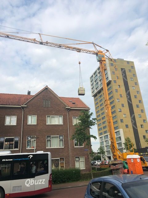 Sloop schoorsteen CVW Groningen In Groningen hebben we voor Centrum Veilig Wonen een schoorsteen gesloopt. Qua bereikbaarheid was dit een uitdaging, maar ook hier hebben we een totaaloplossing kunnen leveren. Van wegafzetting en precario tot spieringkraan en steigerbouw. En na de sloop het aanhelen van het platte dak en een nette, schone oplevering van het werk.